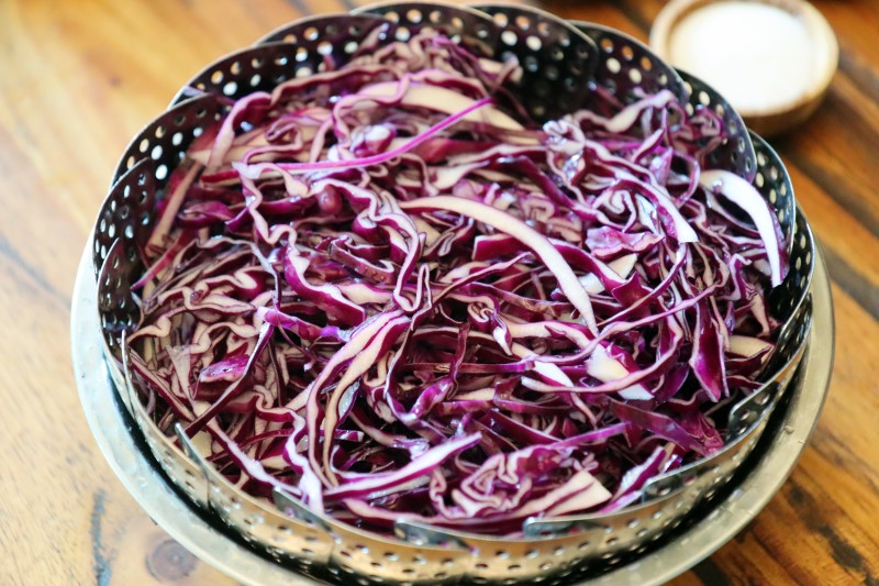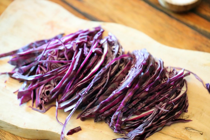 1. 적양배추는 너무 굵지 않게 채 썰어 주세요.